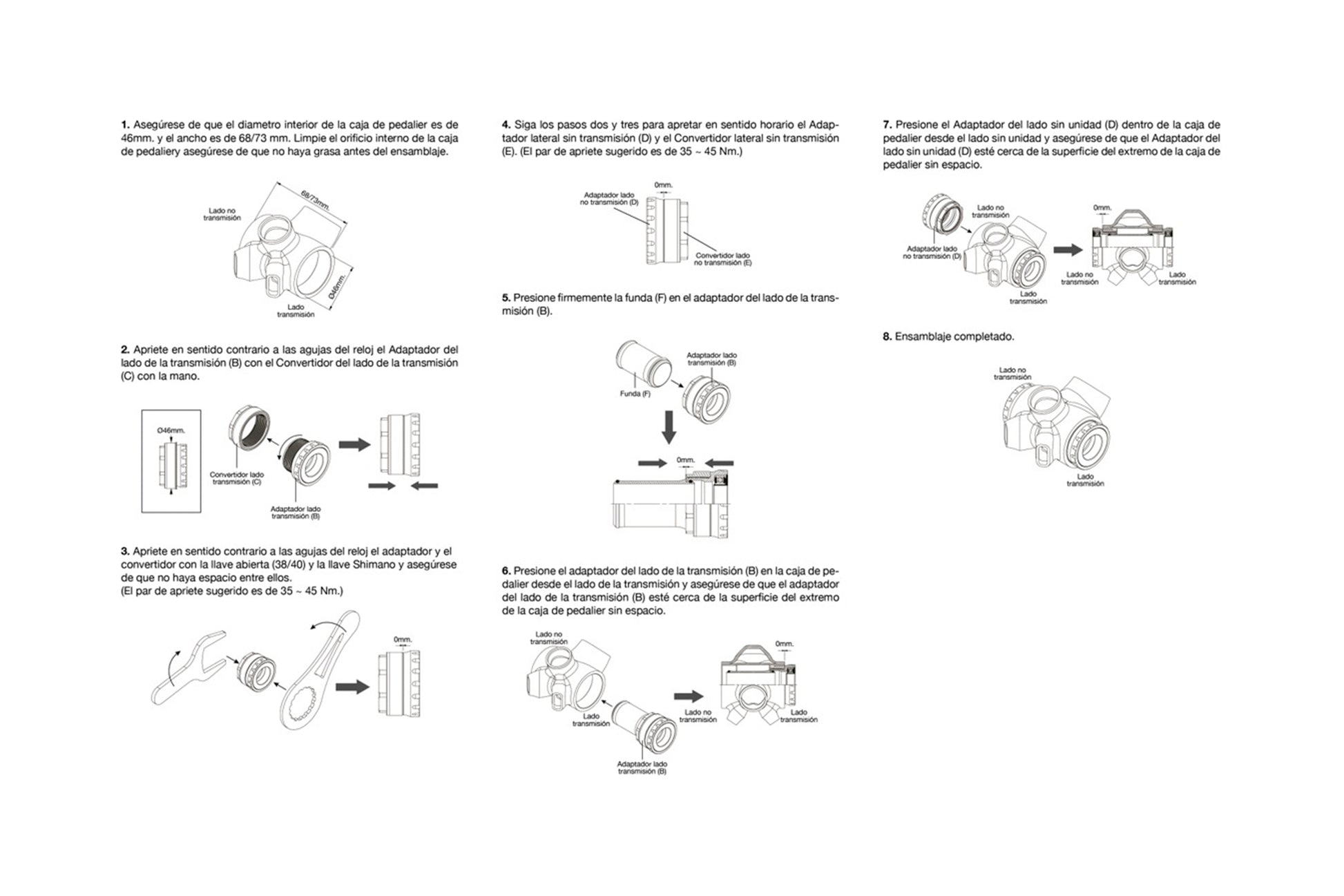 Convierte PF 30 a Shimano BSA con rosca.